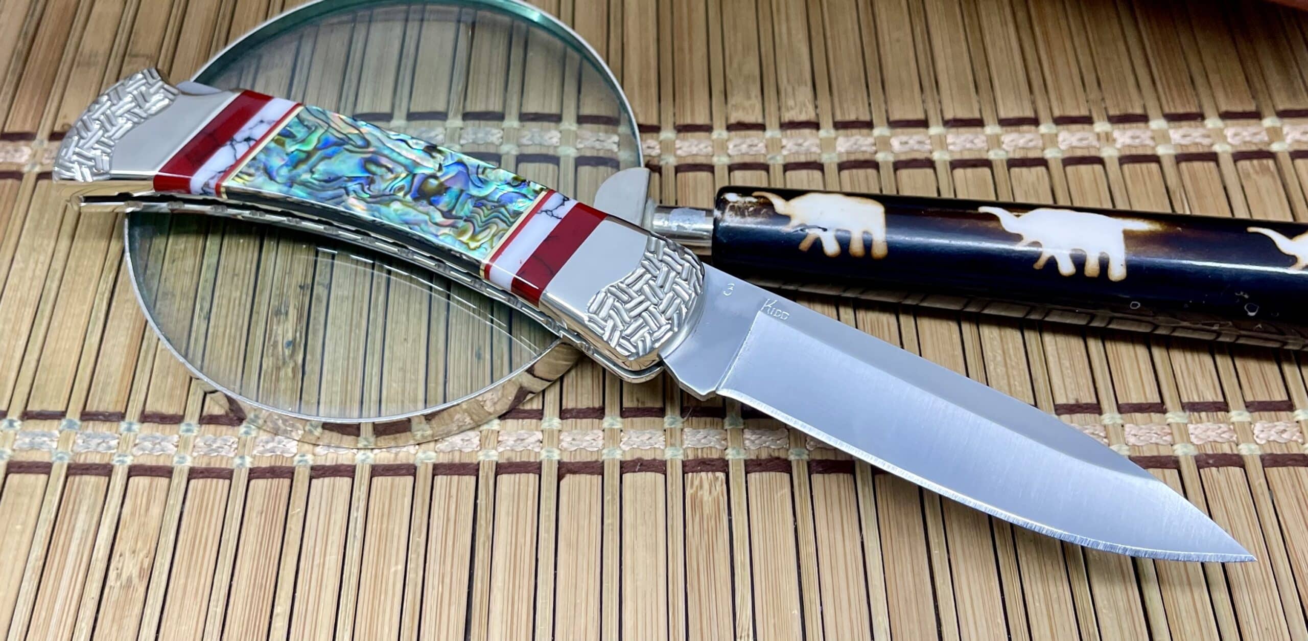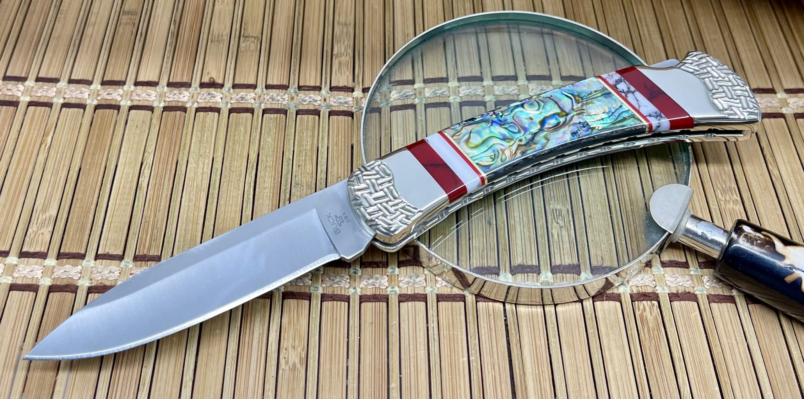 Handle Material: Bloody Jasper Abalone Wild Horse Jasper and Blood Coral