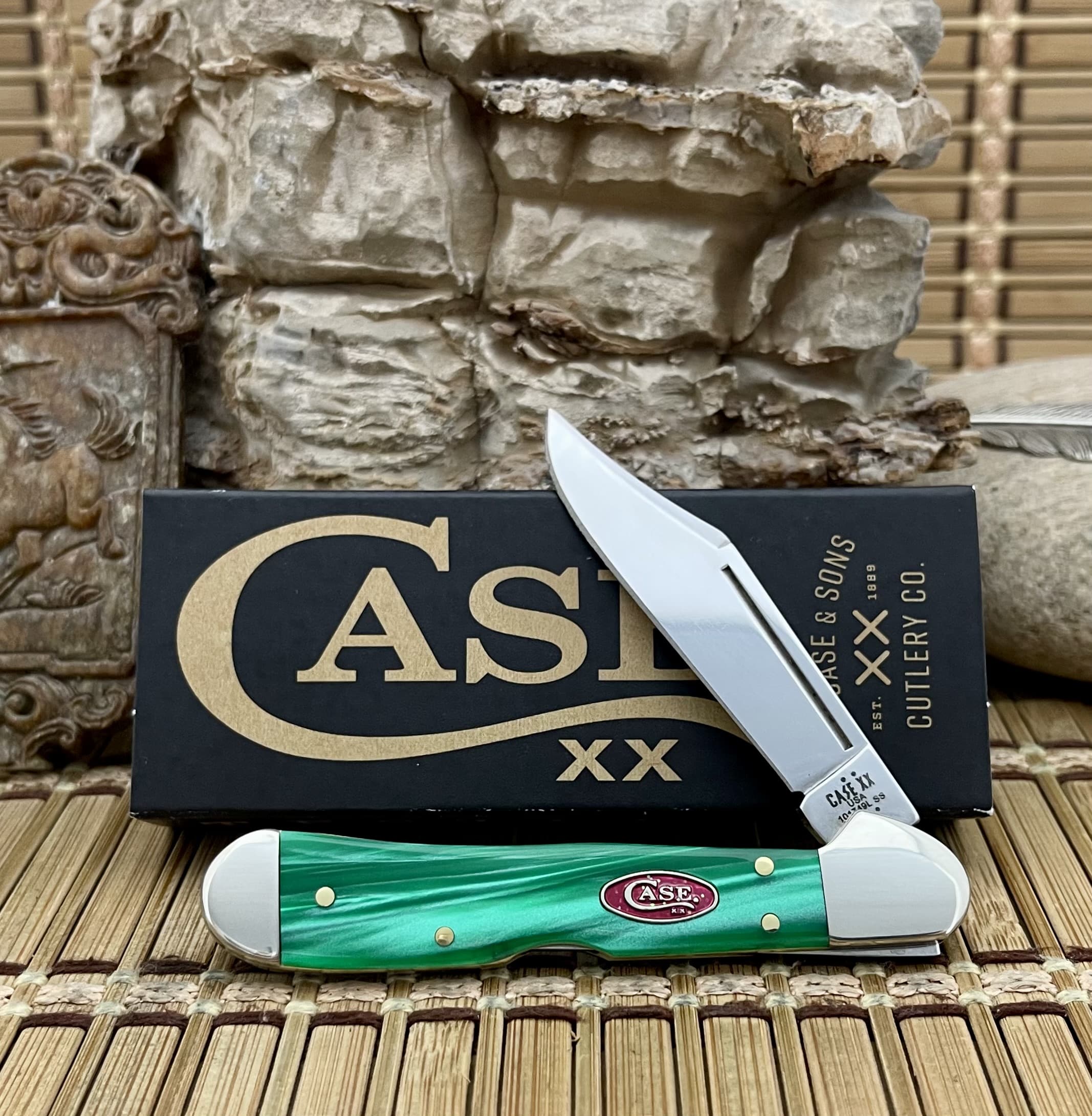 Every Case Green Pearl Kirinite Mini Copperlock Pocket Knife comes brand new in its original Case XX box, proudly made in Bradford, Pennsylvania, USA.