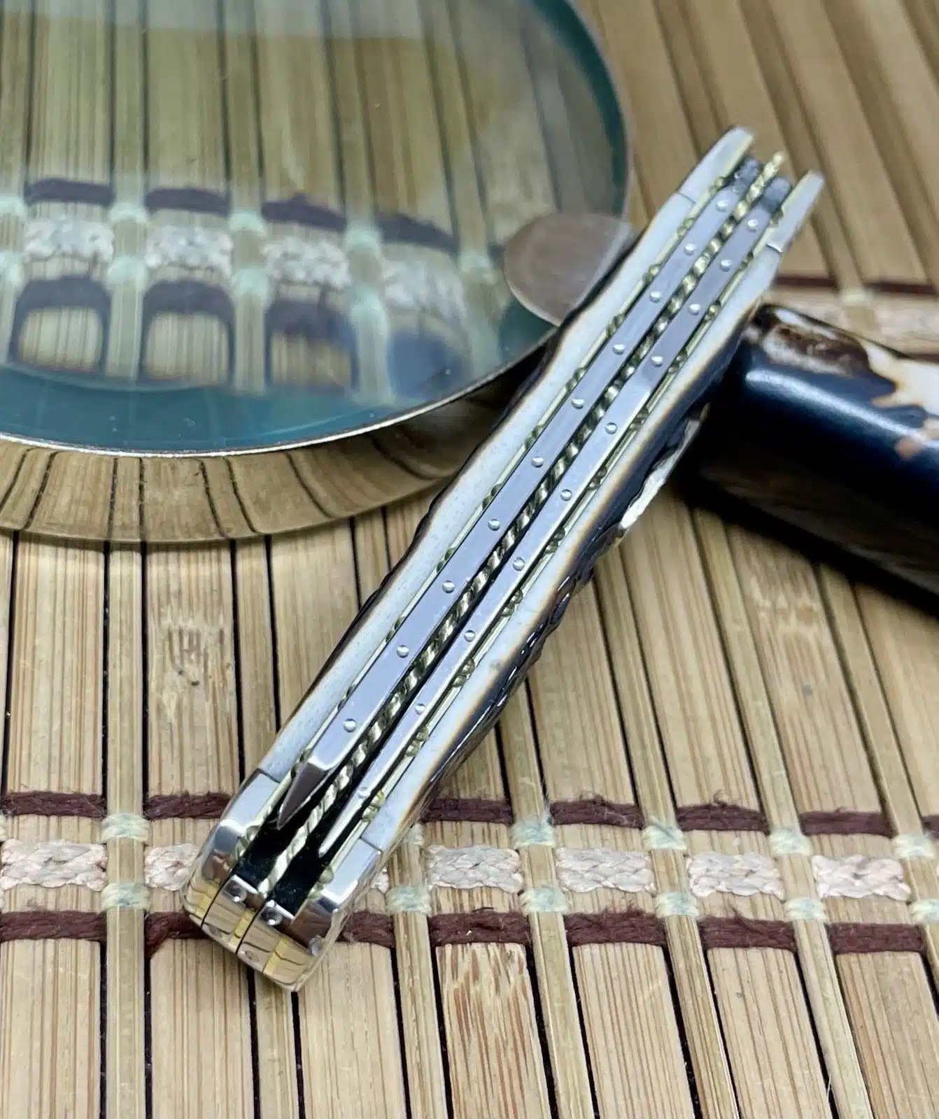 Handle Material: Hand-Fired Peachseed Amber Bone