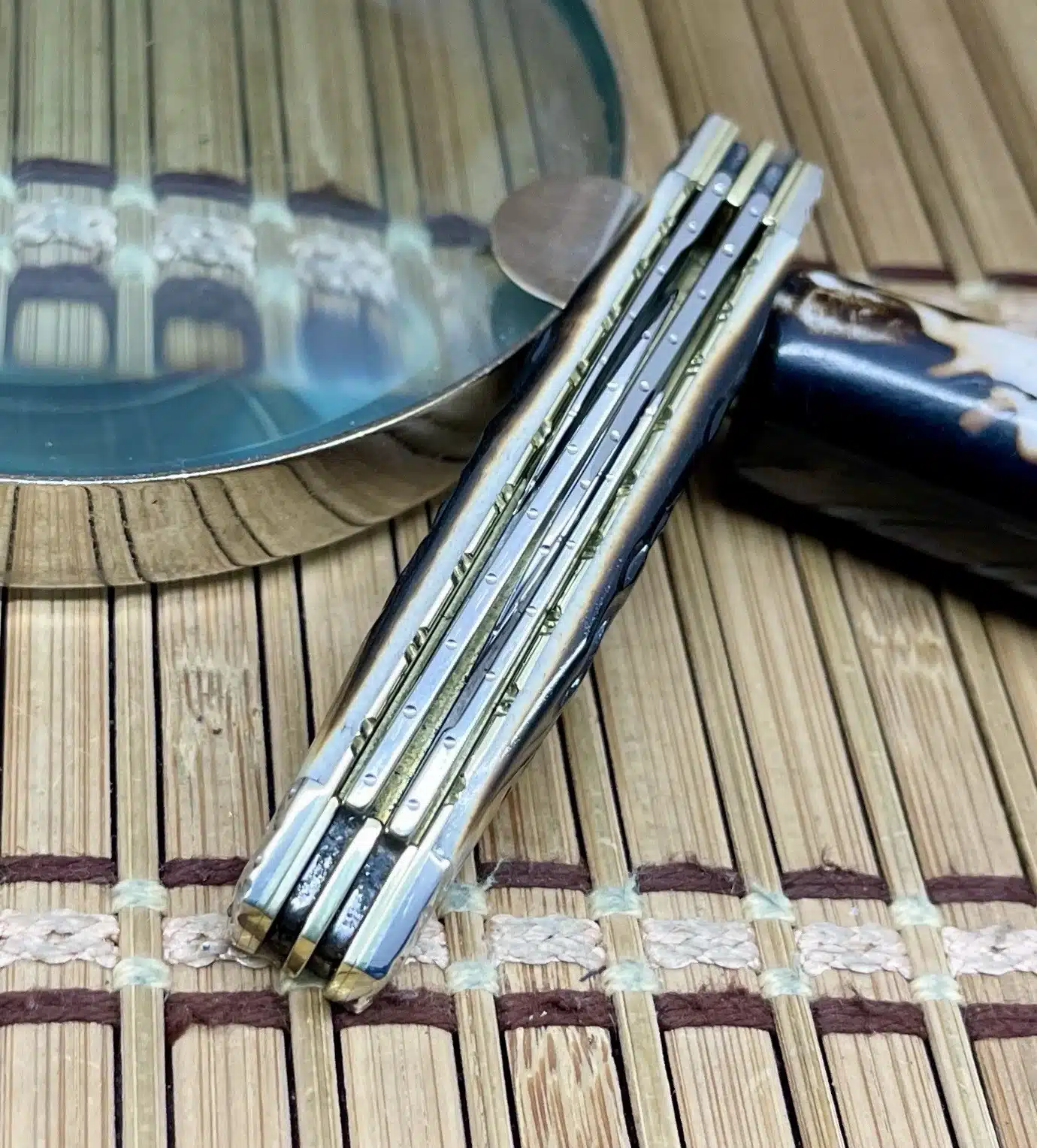 Handle Material: Hand-Fired Peachseed Amber Bone