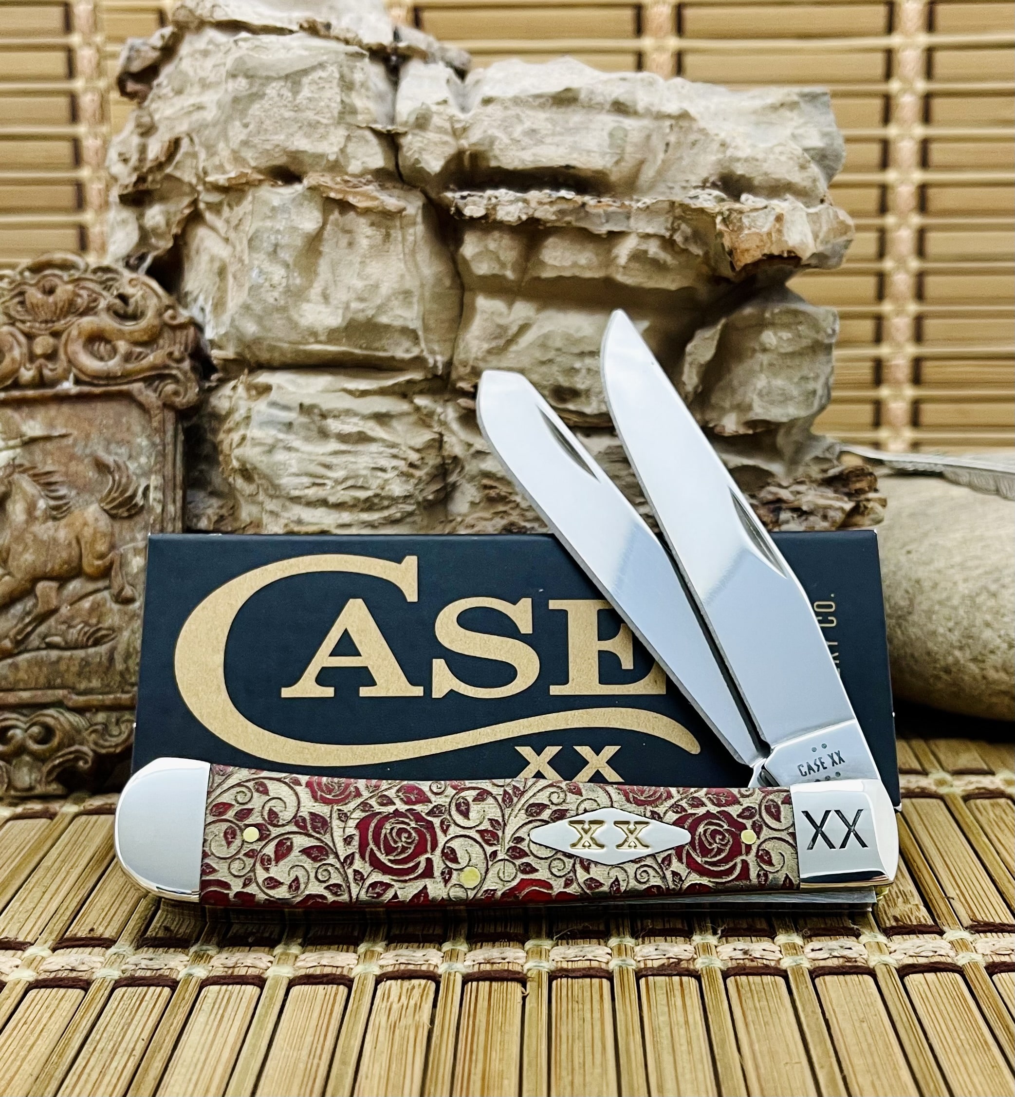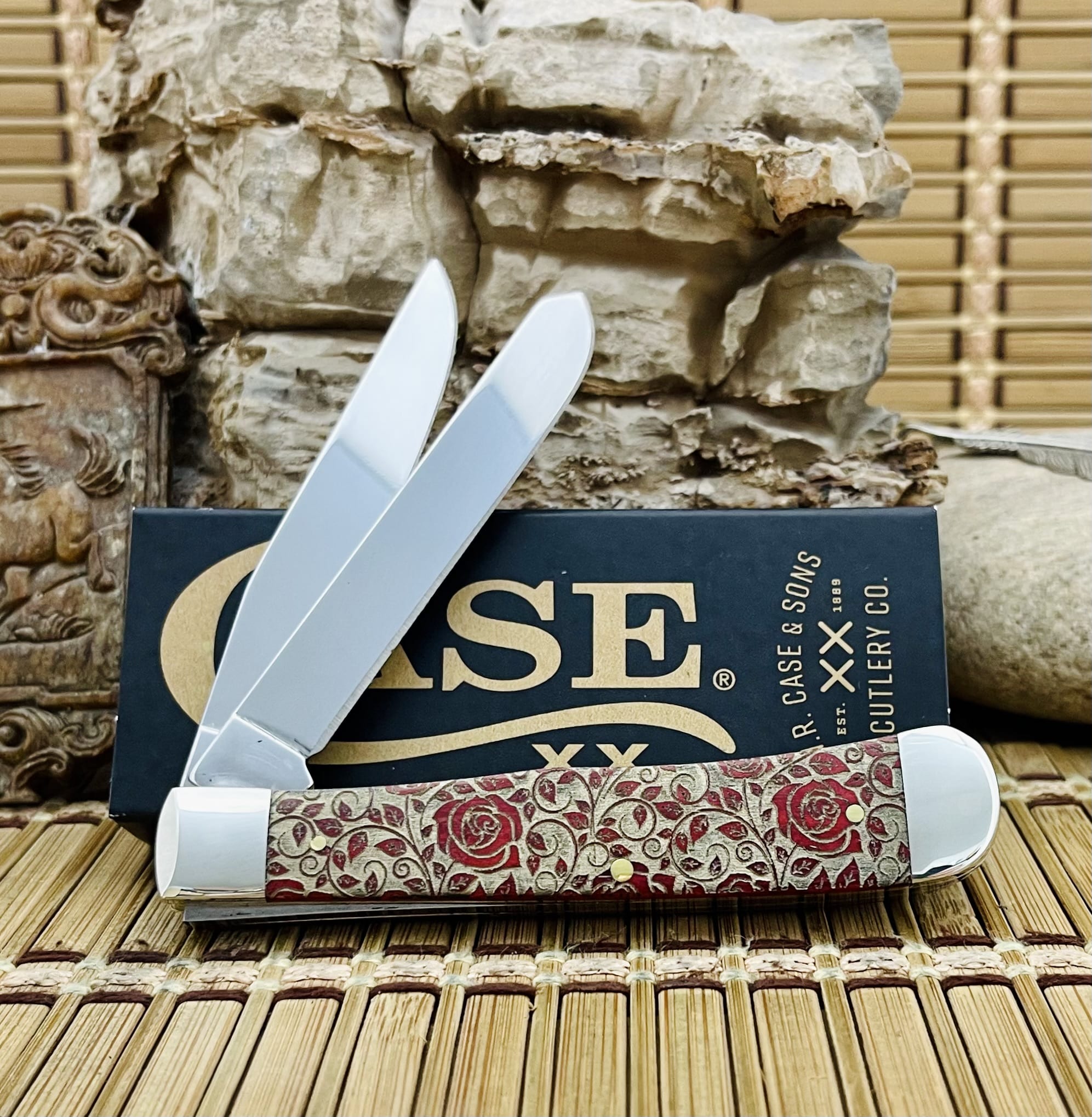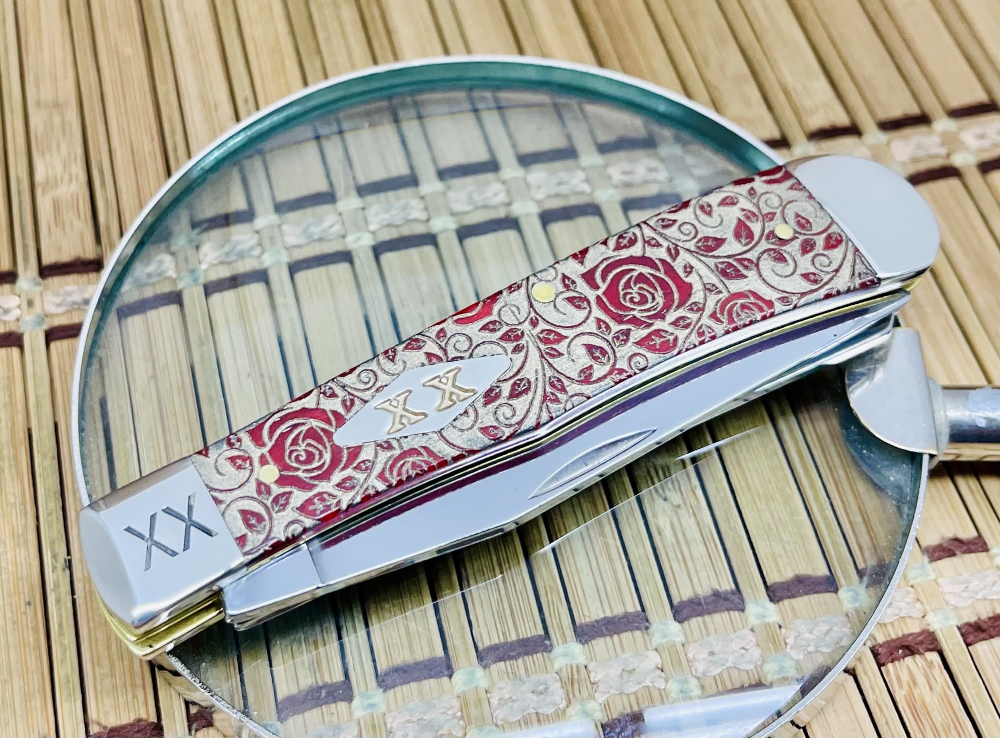 Proudly Made in Bradford, PA USA, this Gold Edition piece celebrates Case’s legacy while introducing bold aesthetics through Wild Horse Custom Knives’ enhancements. With only 500 ever produced and further refined by WHC, it’s a must-have for serious enthusiasts seeking rarity and beauty. Few knives blend vibrant color, artistic detail, and timeless pattern quite like this extraordinary case red bone roses trapper.