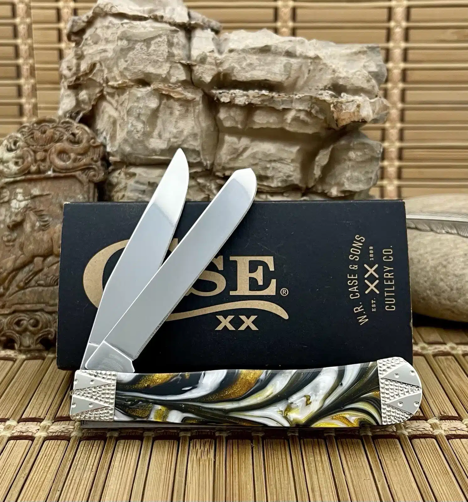 The Case Smokey Sunrise Trapper Pocket Knife showcases timeless Case XX artistry through its soft, glowing mica-pearl handles and precision detailing. Each handle captures a gentle gradient of smoke-gray and golden amber hues, evoking the calm beauty of an early sunrise. Framed by engraved nickel-silver bolsters, this piece stands out as both a functional tool and a collectible work of art.