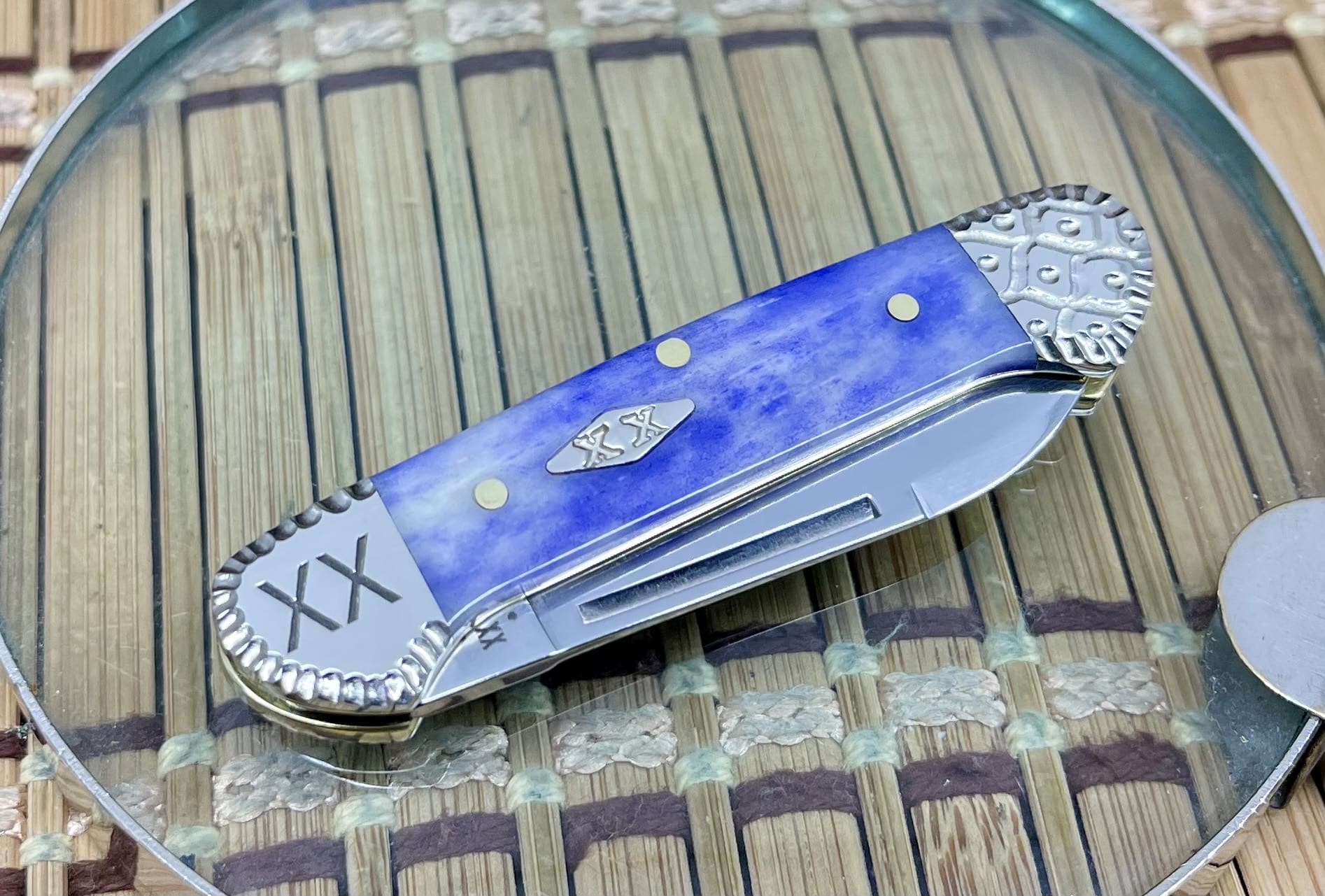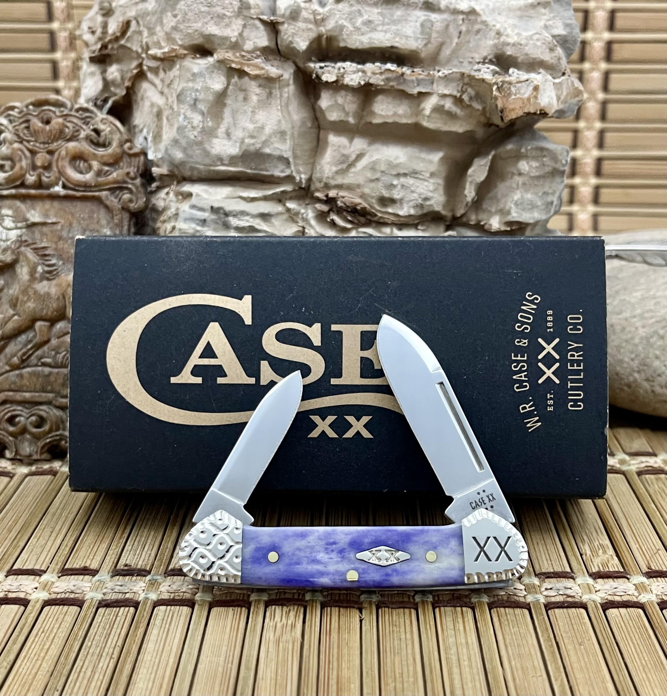 This custom Baby Butterbean comes brand new in a Case XX jewel box, ideal for safe storage or gifting to a discerning Case enthusiast. Made in Bradford, PA, USA and kept new, never used, carried, or sharpened, it’s a top-notch choice for collectors who appreciate vivid bone and engraved detail in a compact pattern. For a small but striking custom, the case ultra violet bone butterbean knife is hard to beat.