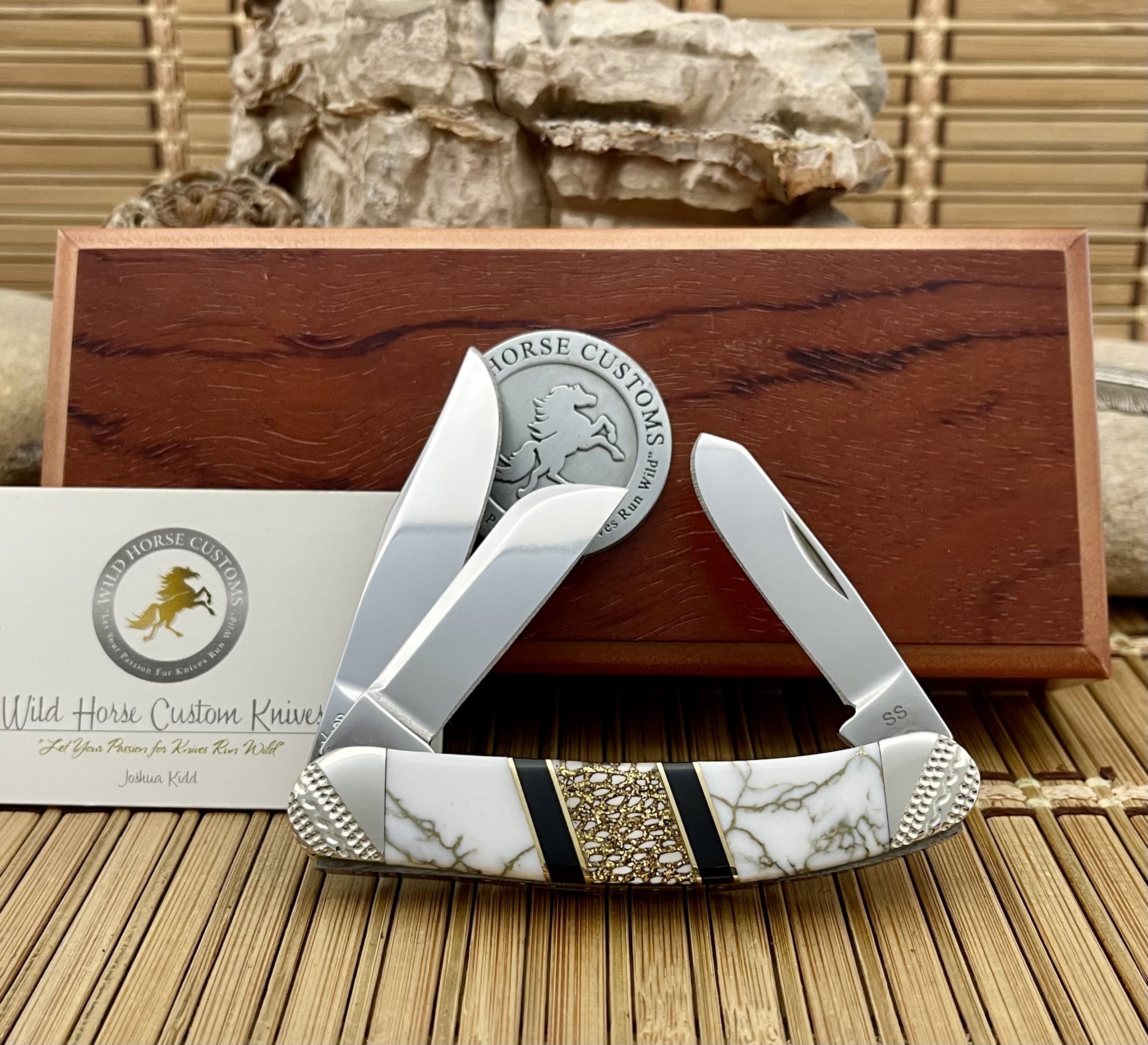 Handle Material: Gold Vein White Turquoise & Black Onyx channel inlays