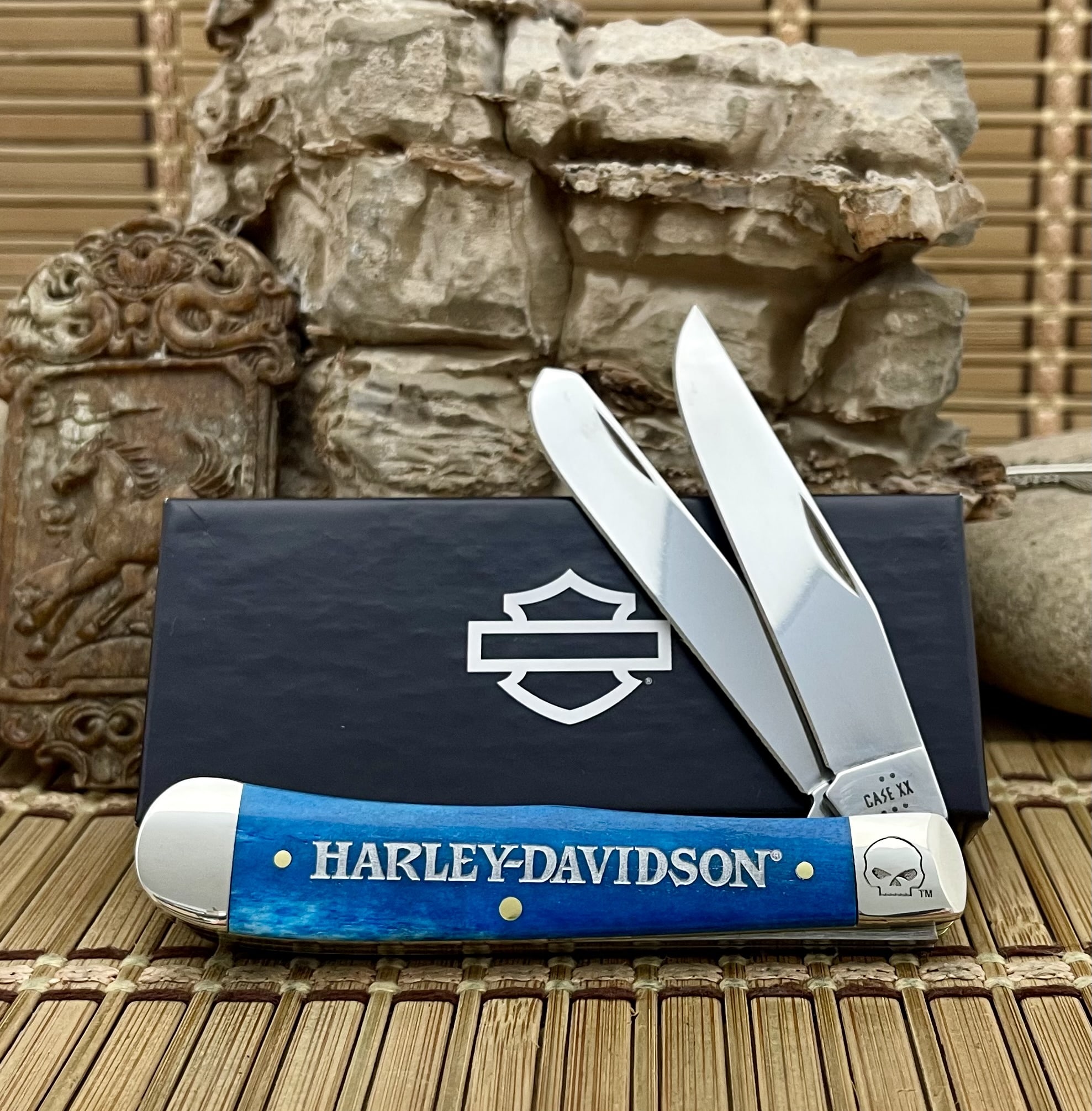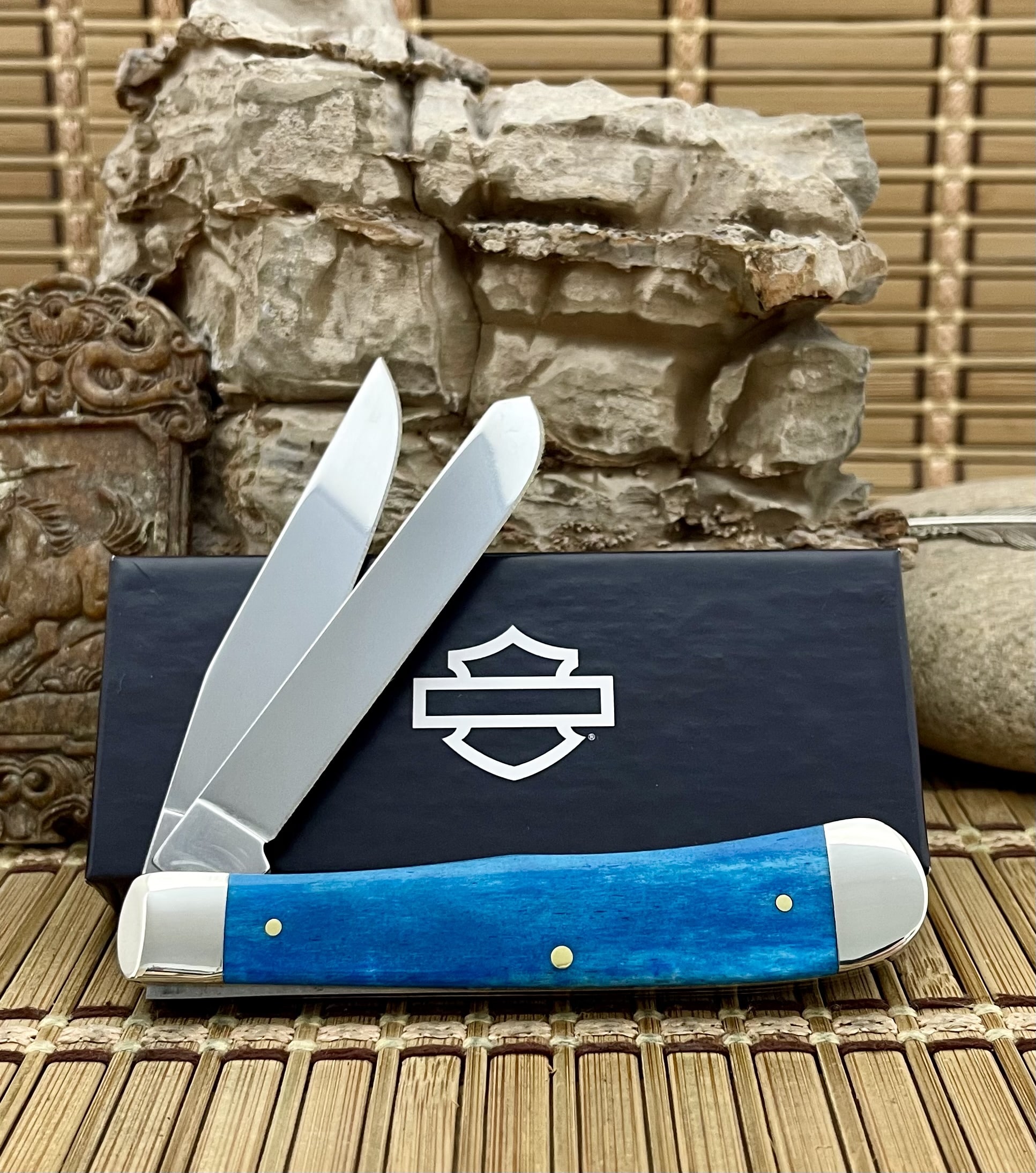 Each case xx harley davidson caribbean blue trapper knife is proudly made in Bradford, Pennsylvania, by W.R. Case & Sons, and comes brand new in its original factory box. This officially licensed collector’s knife makes an unforgettable gift for Harley enthusiasts and Case collectors alike — a fusion of artistry, history, and American pride.