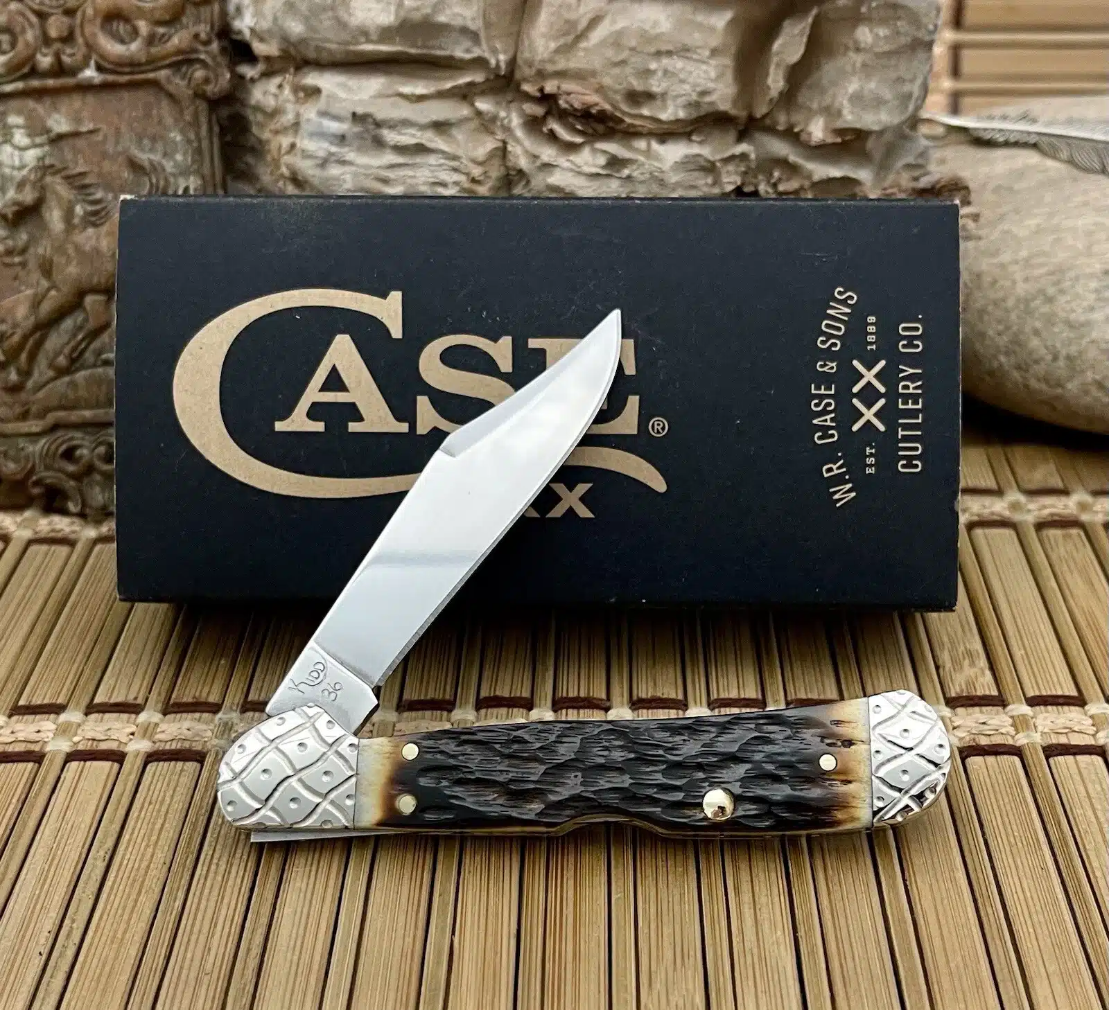 Each knife comes brand new in a Case XX jewel box with a Certificate of Authenticity from Wild Horse Customs, individually numbered #036 of 100 made.