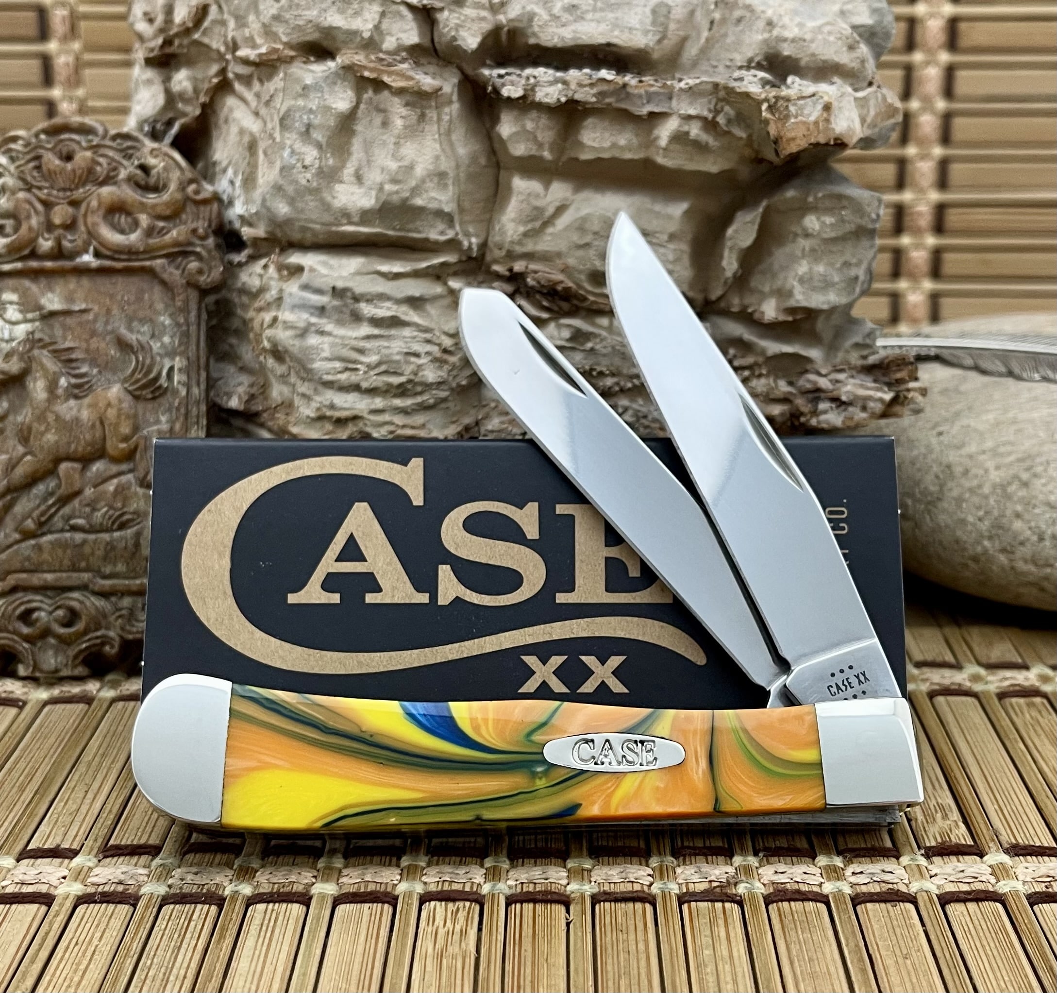 The feather pearl trapper pocket knife from Case XX is a beautiful example of traditional craftsmanship with modern styling. Measuring 4 1/8 inches closed, this Trapper pattern (9254 SS) is one of Case’s most iconic and collectible designs.