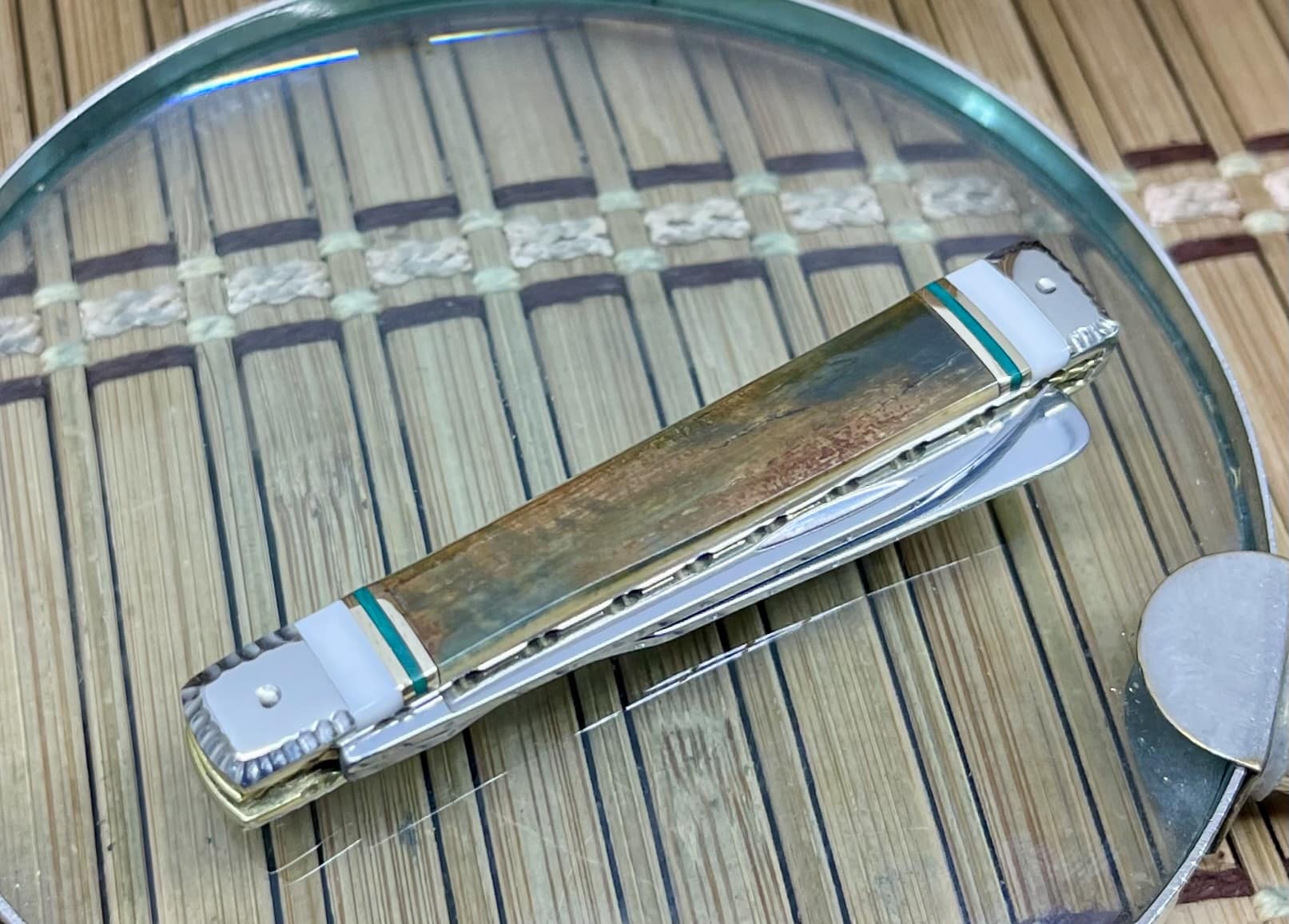 Handle Material: Mammoth Bark Fossil with Imperial Jade inlays