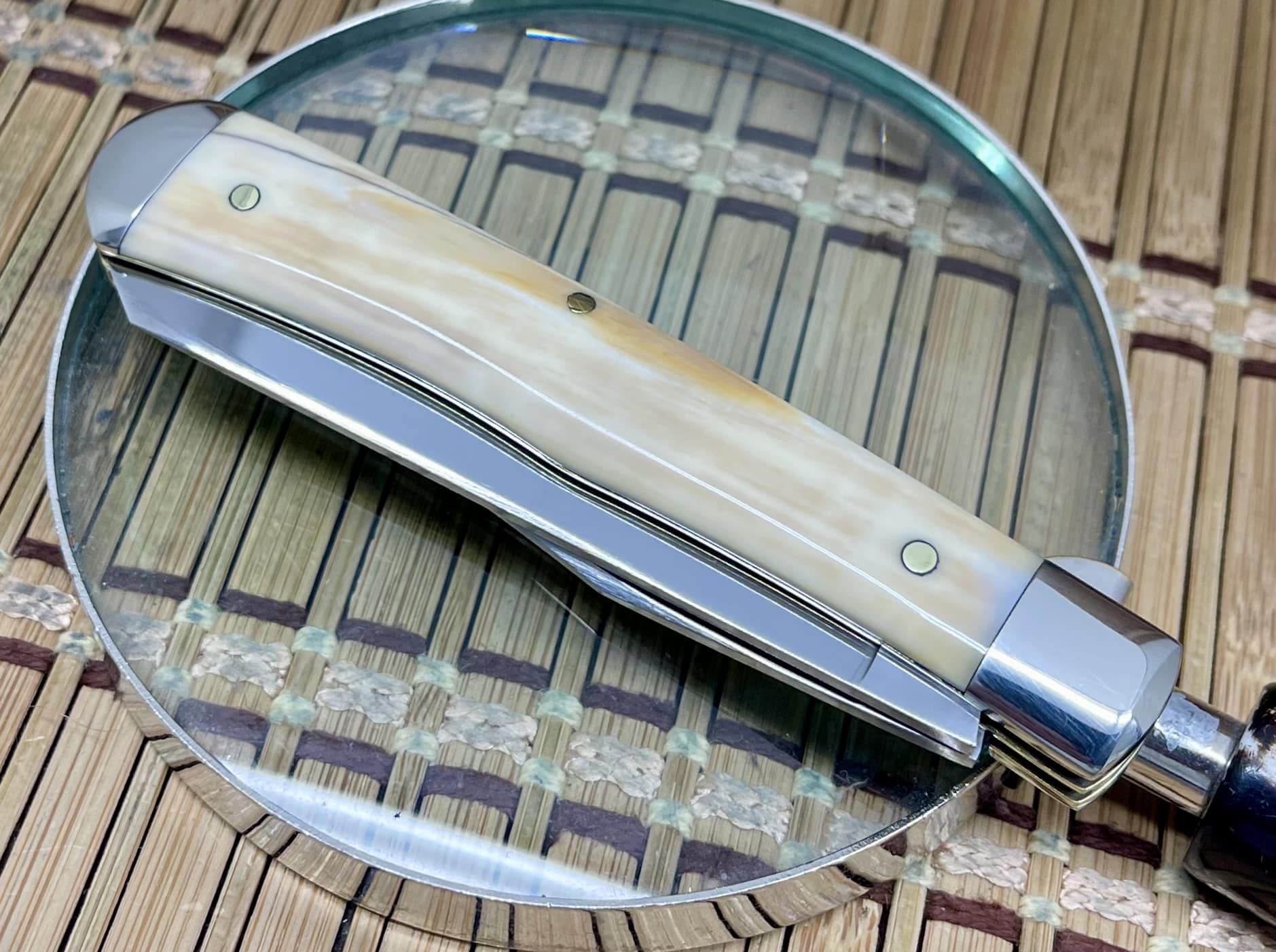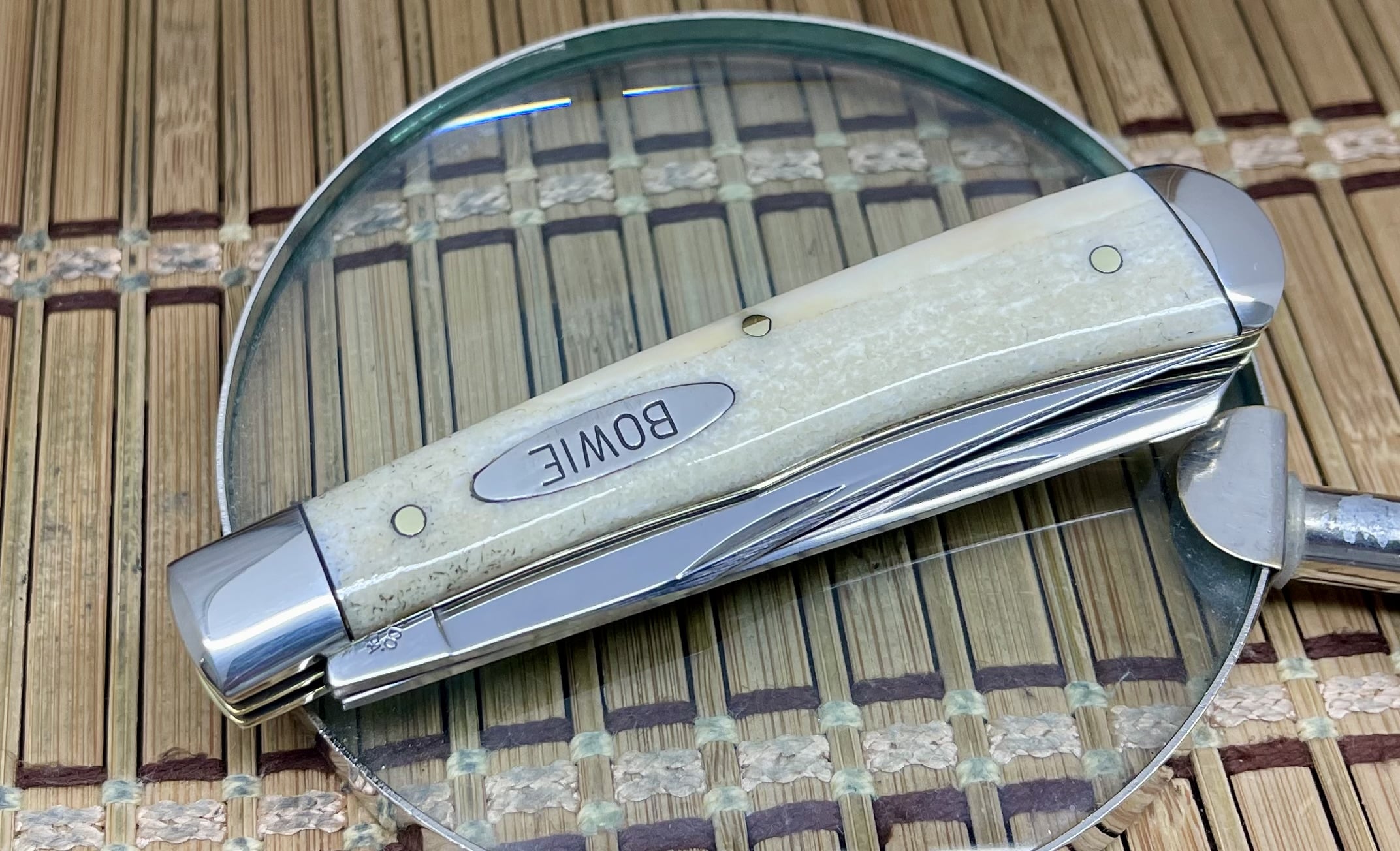 Pieces made under the Bowie Corp. name mark a historically significant period in American knife making. Before founding Northwoods, Shirley commissioned limited knives from Queen featuring premium natural materials—Walrus Fossil among the rarest. Surviving examples remain highly sought after due to their scarcity, craftsmanship, and direct connection to two respected names in the collector world: Queen Cutlery and Shirley’s Northwoods lineage.