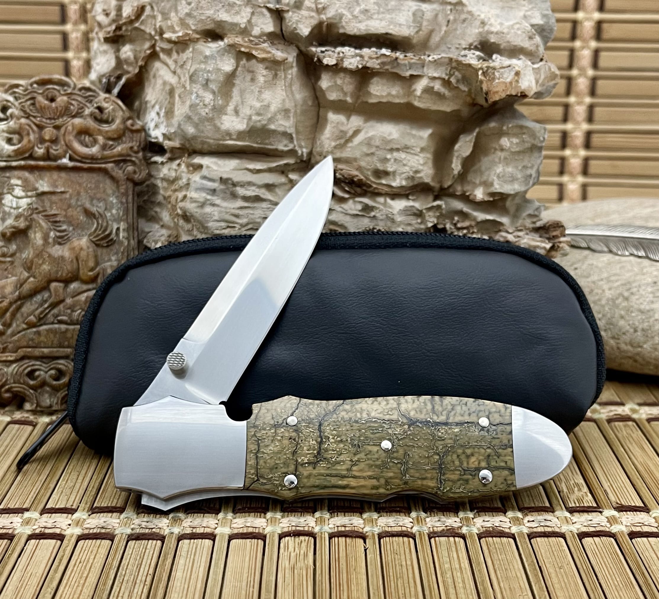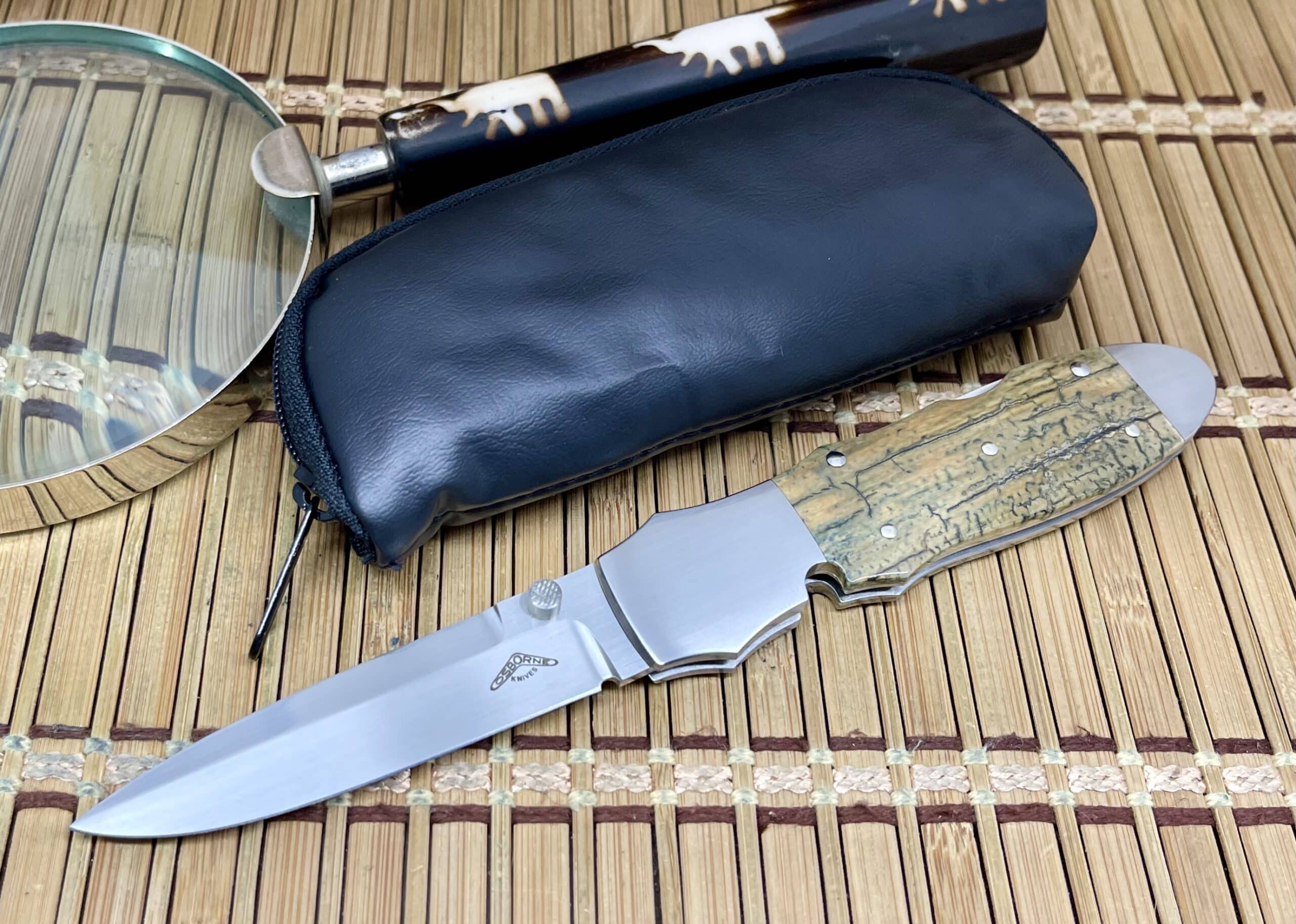The knife measures 7½ inches overall with a 4-inch spear-point blade and a 4¼-inch closed length, weighing just 3.6 ounces. The warren osborne blue mammoth fossil knife is both an heirloom collector’s piece and a functional testament to superior design.